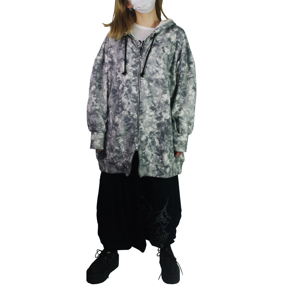 (202PC-0008) ムラ柄 Skull What you プリント フード付き ZIPパーカー