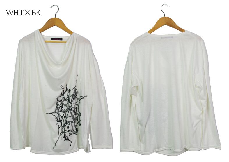 (202T-0011) Spider web プリント ドレープ プルオーバー